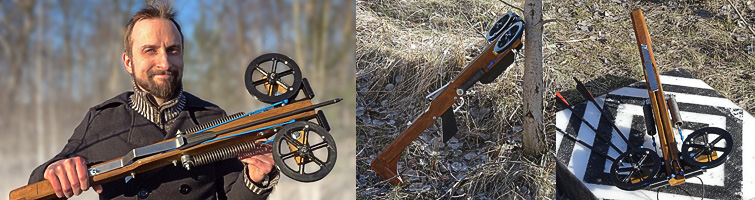 Die mit Zugfedern betrieben Bögen haben einiges an Interesse geweckt und daher habe ich an dem Thema weiter gearbeitet und nun eine Armbrust gebastelt die auch Zugfedern als Energiequelle benutzt. Allerdings mit noch einem etwas anderen Funktionsprinzip. Wer mehr wissen will kann sich das Video anschauen, und/oder den Artikel bei den DIY Projekten. Inklusive Zeichnungen. |