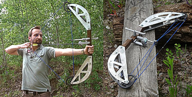 Die mit Zugfedern betriebe Armbrust ist, für die Verhältnisse meines Youtube-Kanals, sehr beliebt (bis jetzt über 800000 Aufrufe). Weil ich das schon kurz nach der Veröffentlichung geahnt hatte und ohnehin an der Idee weiterarbeiten wollte, hatte ich mit einem Bogen angefangen der das selbe Prinzip nutzt, aber weiterentwickelt um ein "Compound Bow Cam System" mit Nicht-Kreisförmigen Rädern und anderen Verbesserungen die mir während des Baus der Armbrust aufgefallen waren. Wie so oft dauerte es dann aber etwas länge, auch begründet durch lange Pausen im Bauprozess. Aber hier ist nun die dritte Version des Zugfeder-betriebenen Bogens mit verbessertem Aussehen und wesentlich verbesserter Leistung. Wer mehr wissen will kann das Video anschauen, und/oder den Artikel bei den DIY Projekten. Inklusive Zeichnungen. |