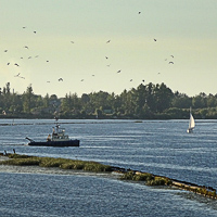 Boote, Vögel, Wasser Riga, Lettland, 2018 |