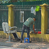 Straßenfriseur Hanoi, Vietnam, 2019 |